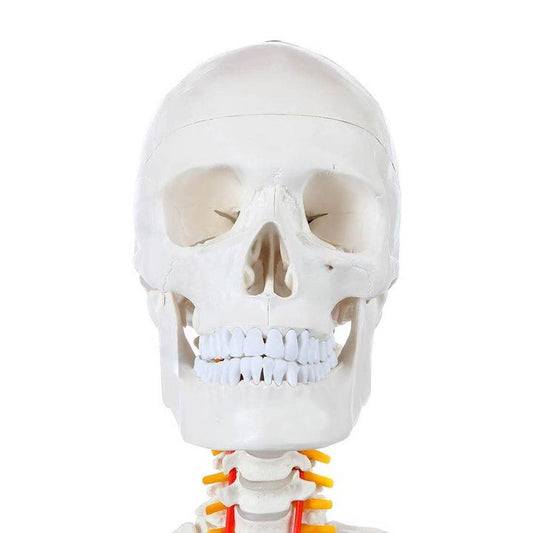 Schelet uman anatomic 180 cm – model didactic articulat, cu detalii precise, inclusiv nervi spinali, montaj pe stativ cu roti