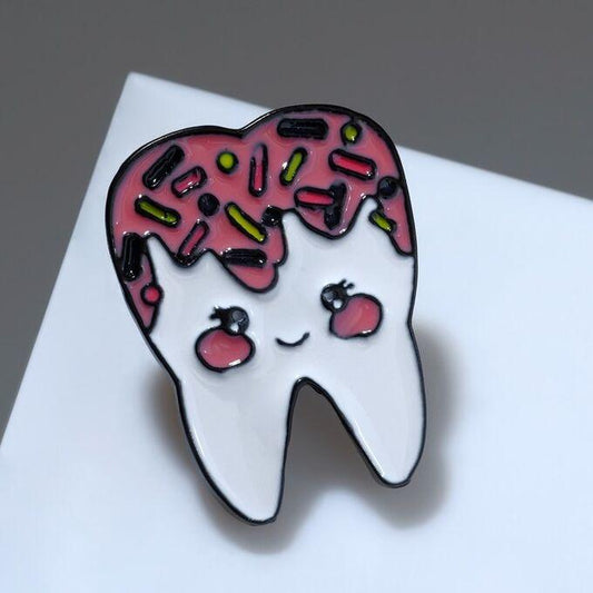Pin dinte cu glazură roz și ornamente, VELICO®