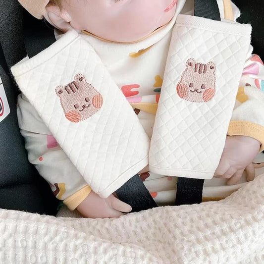 Protectii pentru centura de siguranta, pentru copii, cu model ursulet, din bumbac, cu arici velcro,Alb, VELICO®